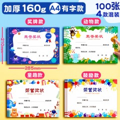可爱创意奖状 A4有字/4款/共100张/加厚160g 单位:组