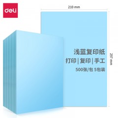 得力7757彩色复印纸 A4 80g 500张/包 5包/箱 浅蓝(单位:包)