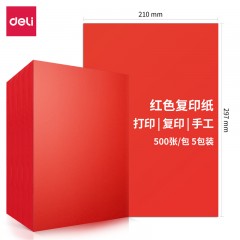 得力7758彩色复印纸 A4 80g 大红 500张/包 5包/箱(单位:包)