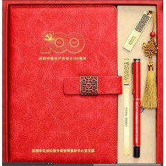 定制党员活动礼品 红+FK笔记本+QB1签字笔+古铜U盘(单位:套)