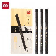 得力75516纤秀笔(小楷)(黑色)12支/盒 单位:盒