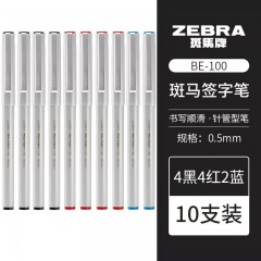 日本斑马BE-100签字笔 0.5mm 10支装(4黑4红2蓝) 单位:组