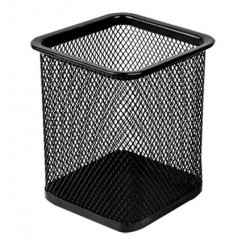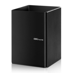 得力9174金属网纹方形笔筒 黑色