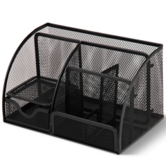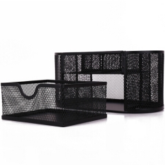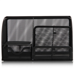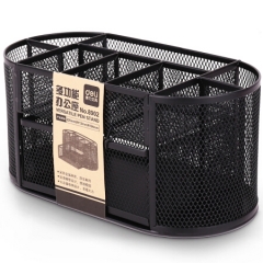得力8902金属网办公桌面收纳盒 多功能九格组合笔筒 黑色