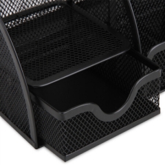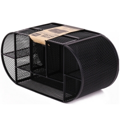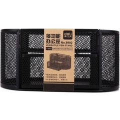 得力9200创意金属网纹办公笔筒多功能七格 黑色