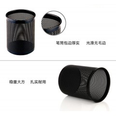 得力909笔筒 金属铁网笔插 圆形加厚笔筒 桌面收纳办公 简约时尚