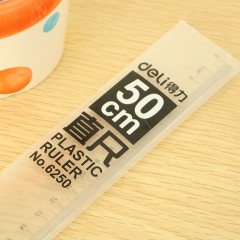 得力6250办公直尺50CM尺子绘图测量透明直尺50公分尺子