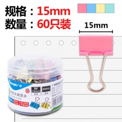 广博PJTC005彩色长尾夹 60只装15mm 单位:筒