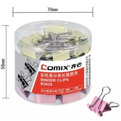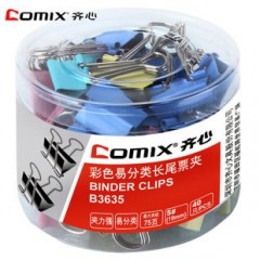 齐心B3635 彩色长尾夹票 5#19mm40只/筒小号