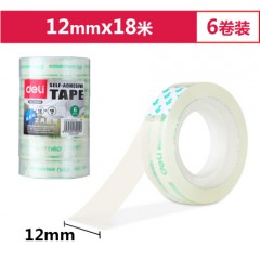得力30029透明高粘易撕文具胶带12mm*18m 6卷/筒
