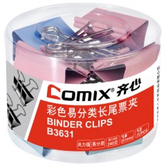 齐心B3631彩色长尾夹1#51MM 12只/筒