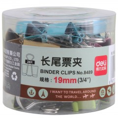 得力8489卡通长尾票夹 混色 24只/筒(单位:筒)