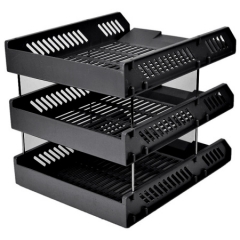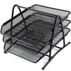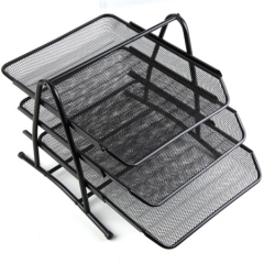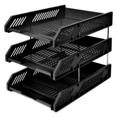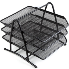齐心(Comix) B2163 金属网格三层文件盘/文件筐/文件框 黑色 办公文具
