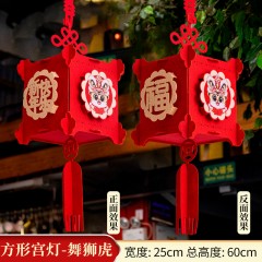 虎年新年红灯笼挂饰(舞狮虎方形灯+可爱虎长方灯+舞狮虎六边鱼宫灯各一个)(单位:组)