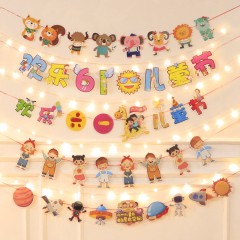 六一儿童节装饰场景布置 改新-61拉旗组合5条+4条灯串 单位:组