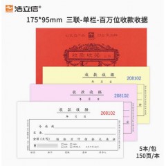 浩立信3411收款收据 三联单栏 175*95mm 150页/本 5本/包 单位:本