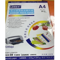 乐文经济高光相片纸A4 20张/包 单位:包