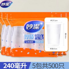 妙洁一次性塑料杯 240ML 100只/包 5包/组 单位:组
