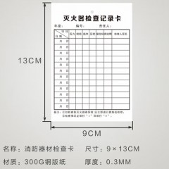灭火器检查记录卡 9x13cm 单位:套