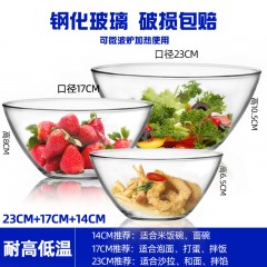 钢化玻璃碗三件套 23cm+17cm+14cm 单位:套