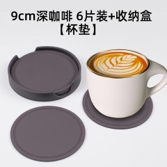 木木三 隔热垫家用防滑餐垫防烫杯垫 6片装+收纳盒 深咖啡色 9cm(单位:组)