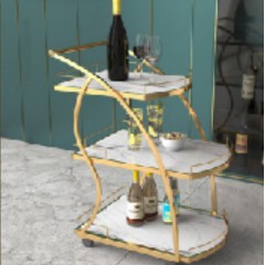 点心手推车 不锈钢钛金+雪山白岩板 单位:台
