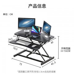 全品屋升降电脑桌 气动无级升降 黑桌双层 80cm 单位:张