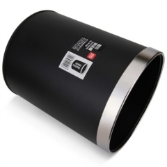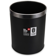 得力(deli) 9199 办公家居经典圆形直桶不锈钢垃圾桶/纸篓/清洁桶 黑色 带压圈