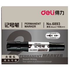 得力(deli6893 物流专用双头油性记号笔大头笔(黑色) 10支/盒