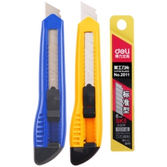 得力(deli)2003 大号耐用塑料壳美工刀/裁纸刀 (黄、蓝混色随机发)