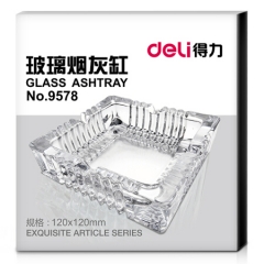 得力(deli)120*120mm中号欧式方形玻璃烟灰缸 茶几摆件9578