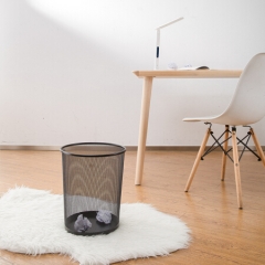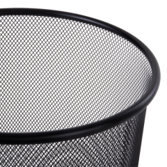 得力(deli)φ29.5cm大号金属网状圆纸篓 办公家用垃圾桶 黑色9189