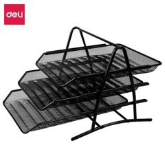 得力(deli)9181 高品质商务三层金属文件盘(座)黑色 1只装