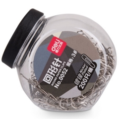 得力(deli)0052 桶装3#镀镍防锈曲别针/回形针 200只/桶