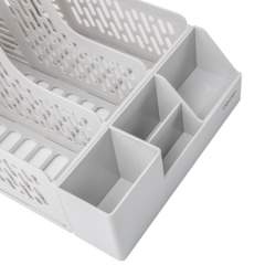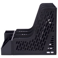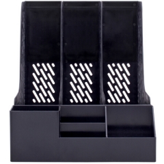 得力78980 带笔筒多功能三联文件框 PC材质(黑)