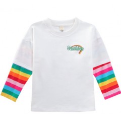 女童长袖T恤小女孩秋装上衣圆领假两件彩虹韩版春秋中大童打底衫(130CM*15件,140CM*15件,150CM*3件)
