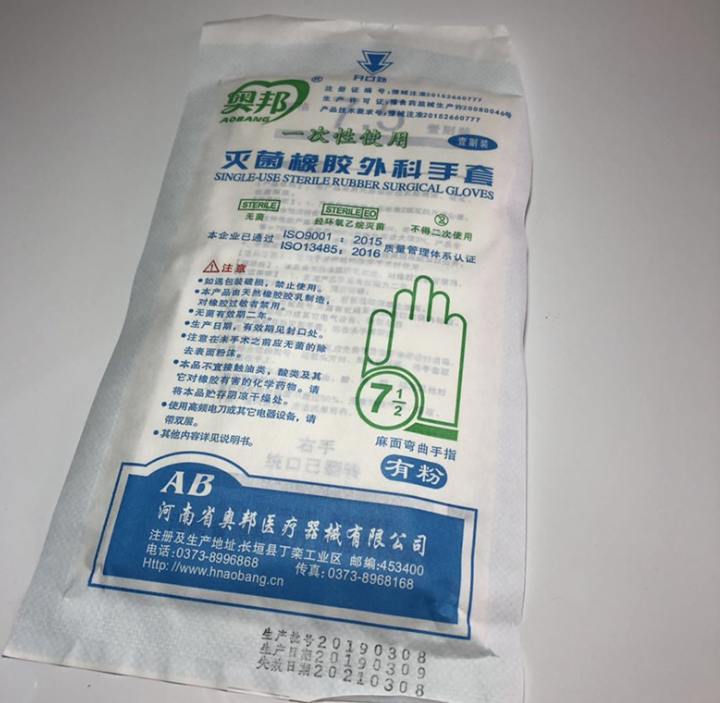 商品名称:奥邦一次性外科手套10包/盒