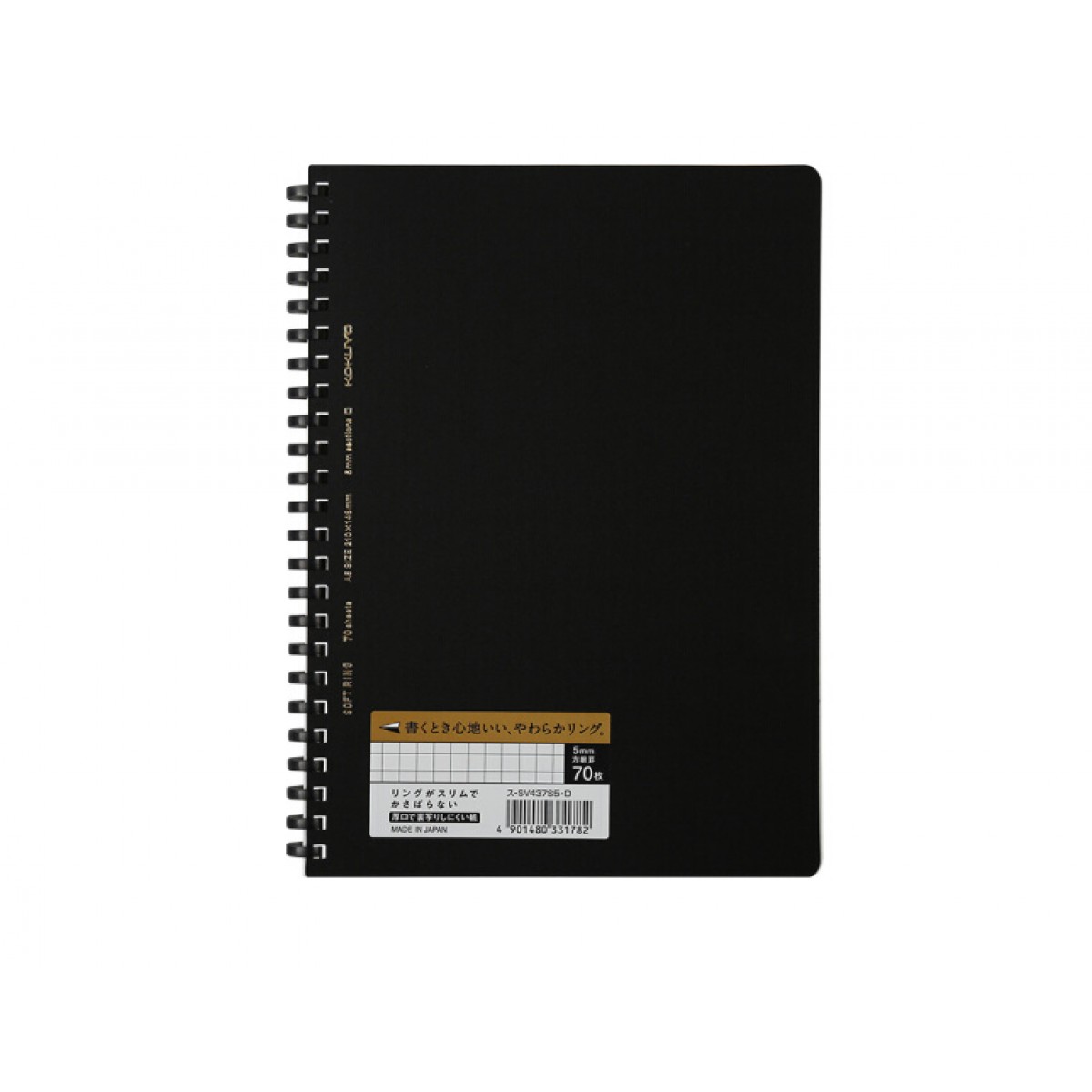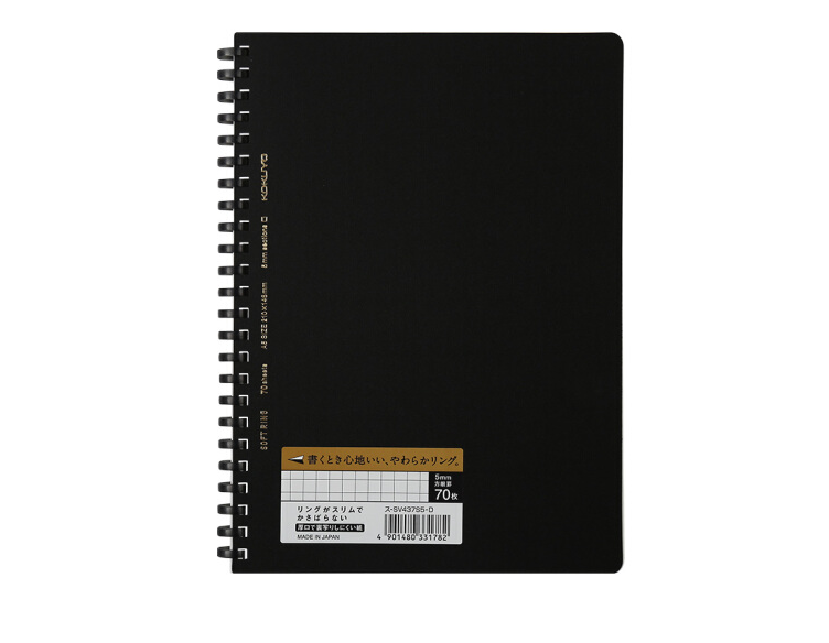 日本国誉(KOKUYO) SU-SV437S5-D进口campus 商务风PP烫金封面软线圈笔记本 5mm方格易撕款 A5/70页 (黑色)
