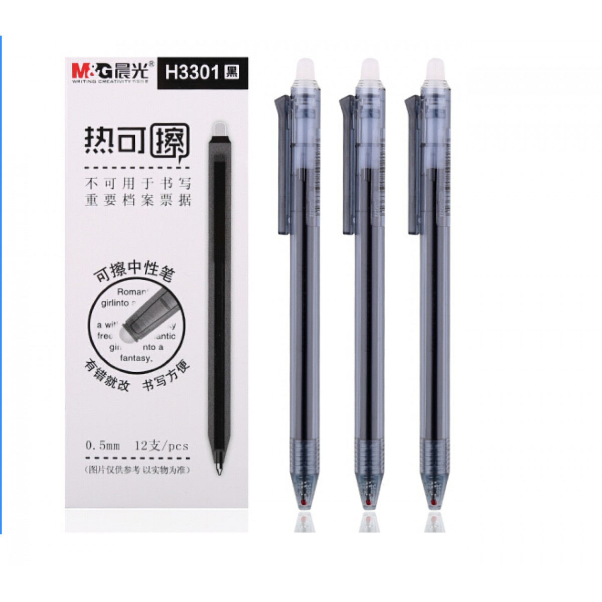 商品名称:晨光(M&G)H3301 热可擦中性笔水笔学生签字笔 可擦笔0.5mm 12支/盒(黑色)