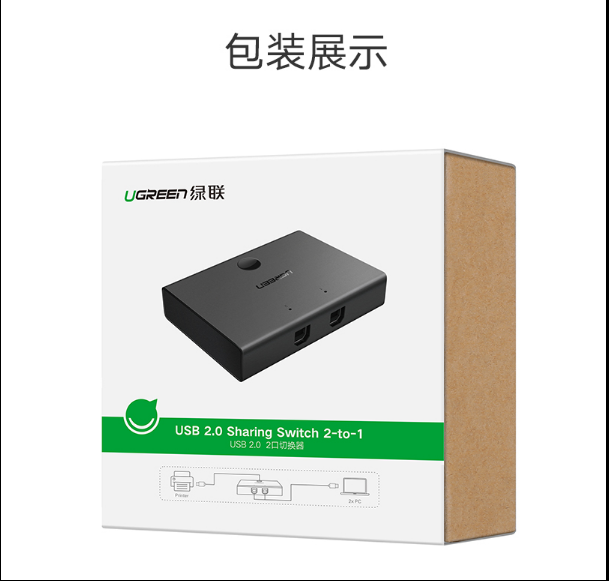 商品名称:绿联 30345 USB打印机共享器2口4口切换手动一 拖二电脑分配器2进1出