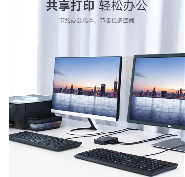 绿联 30345 USB打印机共享器2口4口切换手动一 拖二电脑分配器2进1出