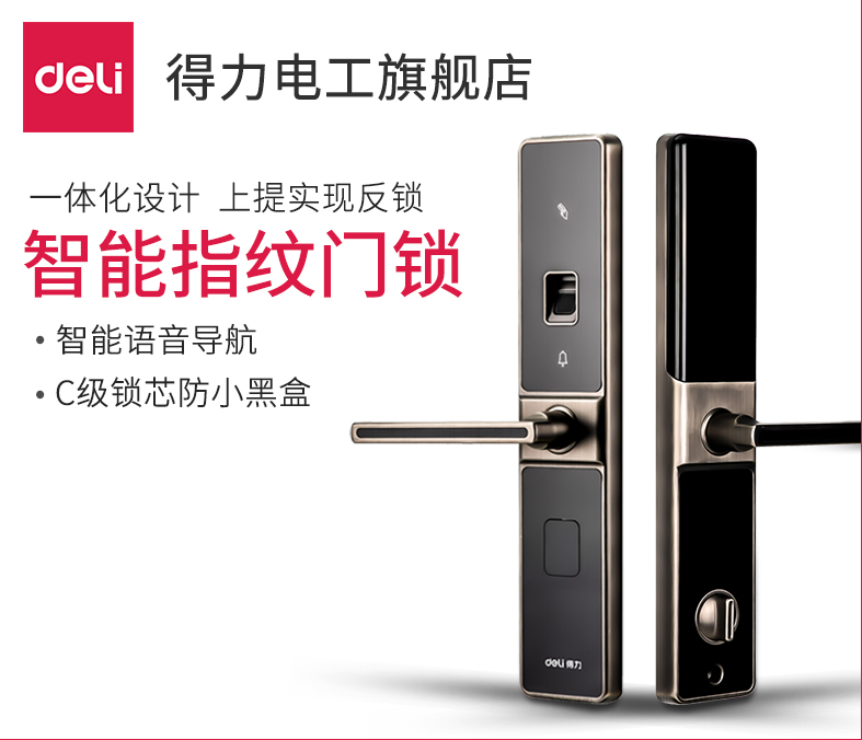 商品名称:得力deli 13902 智能指纹门锁