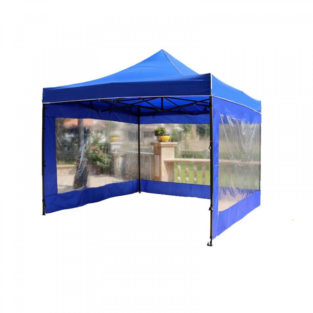 商品名称:广告帐篷四脚遮阳篷雨棚折叠伸缩 2*2m 蓝色+3面(侧边透明)单位:个