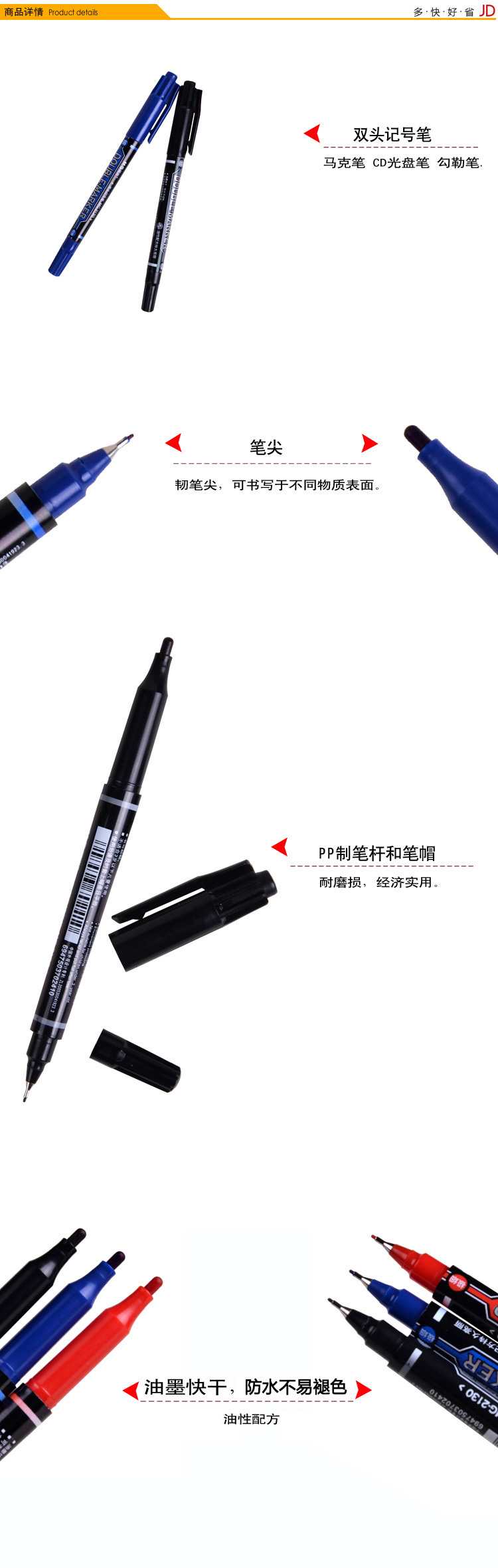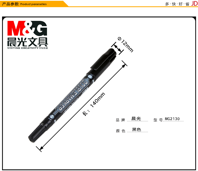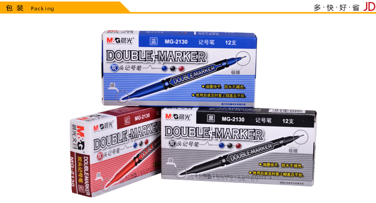 晨光(M&G) MG2130 双头记号笔,亦称马克笔、CD光盘笔、勾勒笔,油墨快干,书写完成待干燥后防水不褪色;可书写于不同物质表面,油性配方持久亮丽。