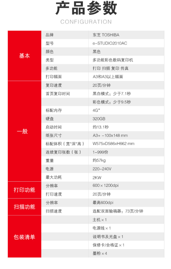 商品名称:东芝(Toshiba)2515AC e-STUDIO2515AC A3彩色数码复合机 主机+双纸盒+双面器+双面输稿器+工作台