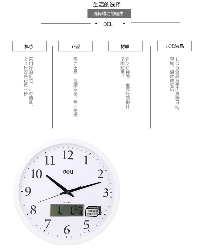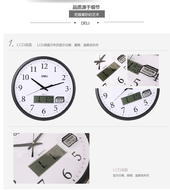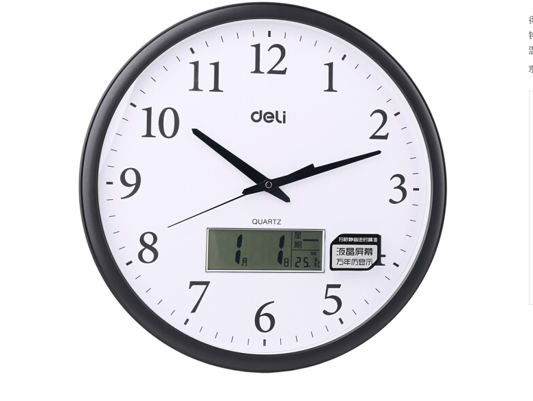 商品名称:得力8951挂钟万年历功能 16寸(深灰)40.5cm