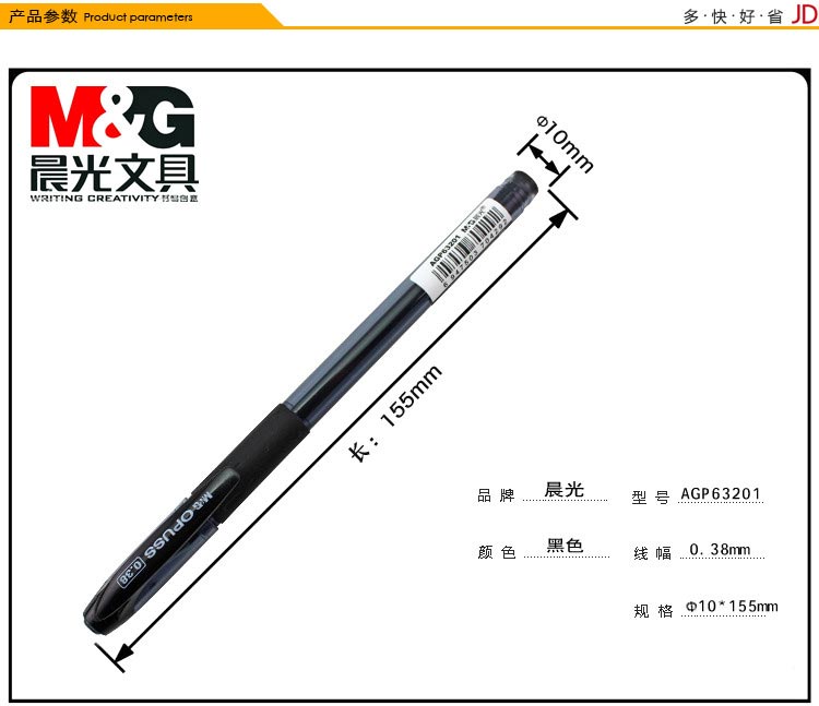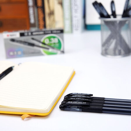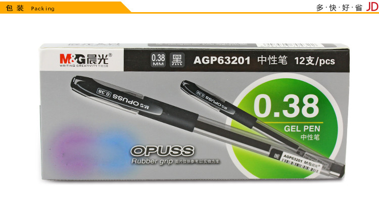 晨光(M&G) AGP63201 中性笔 黑 0.38mm 12支/盒 ,笔头由不锈钢和碳化钨珠头制造,0.38mm细笔尖,书写流畅,字迹清晰不易褪色。新旧包装交替发货