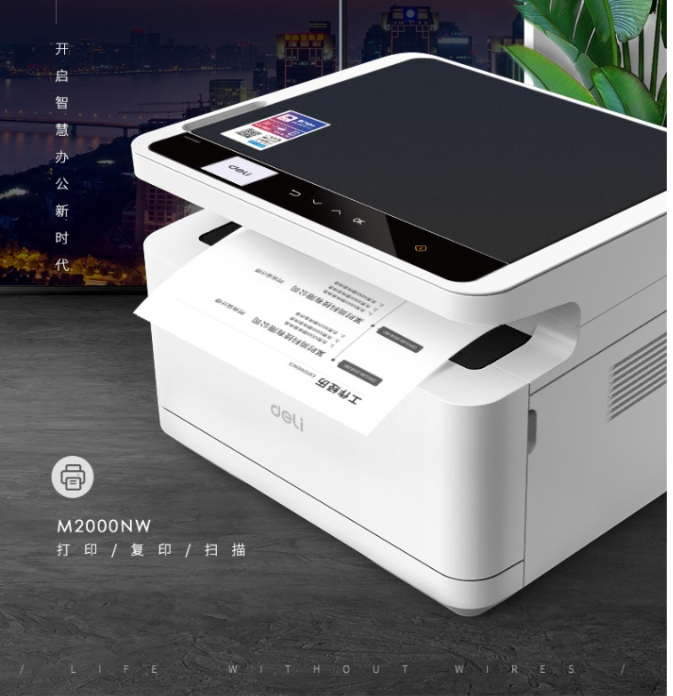 得力(deli) M2000NW 黑白激光打印复印扫描三合一一体机 家用办公商用 (USB/有线/无线连接)(白色)