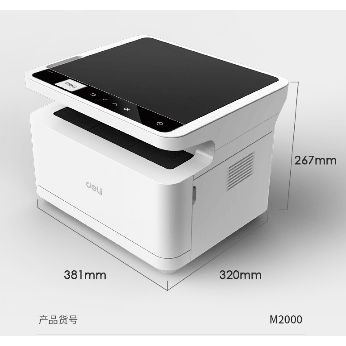 得力M2000黑白激光打印机 最大支持幅面A4 打印复印扫描三合一体机 白色 单位:台