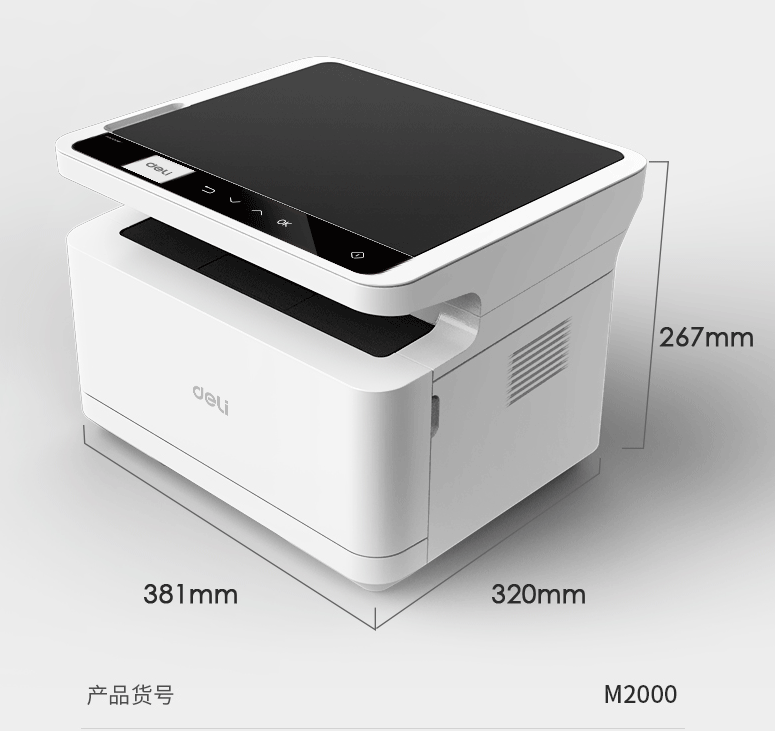 商品名称:得力M2000黑白激光打印机 最大支持幅面A4 打印复印扫描三合一体机 白色 单位:台